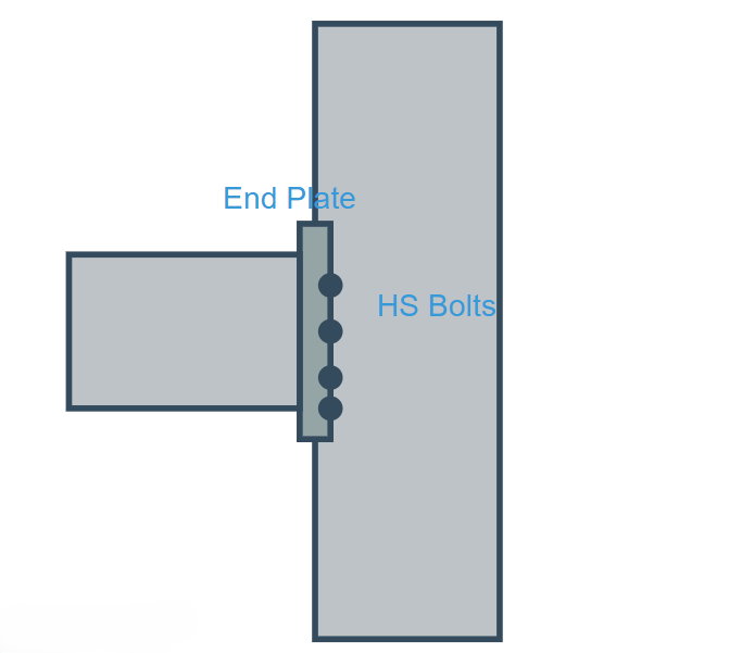 Extended end-plate connections use a steel plate shop-welded to the beam end and field-bolted to the column flange. AISC 358 identifies four standard configurations: the 4E, 4ES, 8E, and 8ES, differing in the number and arrangement of bolts. These connections are valued for their architectural appeal (no exposed welds in the field), but require precise fabrication.